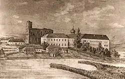 The Kražiai College (Latin: Collegium Crozensis) was a Jesuit college (equivalent to a modern secondary school) in Kražiai, Grand Duchy of Lithuania and later Russian Empire. Established in 1616 in hopes to educate new generations of anti-Protestants, the college was one of the major cultural and educational centers in Samogitia. In 1620–1742, it shared premises with the Samogitian Priest Seminary.[1] In 1844, the college was transferred to Kaunas.