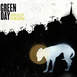 "Jesus of Suburbia" is a song by the American rock band Green Day. It was released as the fifth and final single from the group's seventh studio album, American Idiot, and the second song on the album. With the song running for 9 minutes and 8 seconds, it is Green Day's second longest song (with the band's longest song being fellow American Idiot song "Homecoming", which runs for 9 minutes and 18 seconds) and the group's longest song to be released as a single. The studio version of the song was considered unfriendly for radio, so it was cut down to 6½ minutes for the radio edit. The single has sold 205,000 copies as of July 2010.[9] Despite its commercial success, the song is the only hit single from the American Idiot album not to be included on the band's greatest hits album, God's Favorite Band.