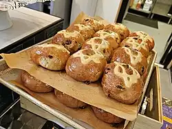 ![]() Star of David hot cross buns for sale at the Kosher Deli, Auckland Hebrew Congregation, Remuera, Auckland | |