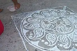 Jhoti chita (Odia: ଝୋଟି ଚିତା, romanized: jhoṭi citā) is a traditional Odia white art mostly seen in rural areas of Odisha. It is made from rice paste and with a piece of cloth surrounded with a stick is used to create beautiful patterns.[1] People also use their bare fingers to make jhoti chita. They can be created over walls and on floors.[2]