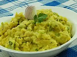 Jhunka or zunka is a gram flour porridge or a gram flour curry, similar to polenta.[1][2][3] It is a traditional[4] Indian dish prepared in Maharashtra,[5][6] North Karnataka, and Goa. It is also known by the name of pithla or pithle.[7] When served with bhakri, the dish is referred to as jhunka bhakar or pithla bhakri. Pithle is also known as chun in the Vidarbha region of Maharashtra.