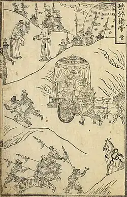 Ji Shao (253 – c.9 September 304[1]), courtesy name Yanzu, was a politician of the Jin dynasty (266–420). He was the son of Ji Kang, one of the Seven Sages of the Bamboo Grove. Although his father was wrongfully killed by the ruling Sima clan, Ji Shao rose to become a prominent minister within the Western Jin court, reaching the position of Palace Attendant. He became embroiled in the War of the Eight Princes and immortalized himself by sacrificing his life to protect Emperor Hui of Jin at the Battle of Dangyin. Opinions on Ji Shao varied among contemporary and later scholars; he was praised for his exceptional loyalty to the emperor at Dangyin, but also criticized for going against the Confucian principle of filial piety by serving the family that killed his father.