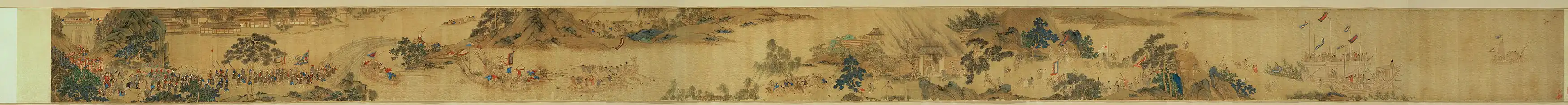 The retreating raiders made their way to the coast at Zhapu while carrying their plunder with them. Their heavily laden river boats, thousands in number, stretched for miles.[74] They however, did not have the seaworthy vessels to make their escape from China since Xu Hai had theirs destroyed when they first landed. Here Hu Zongxian offered them a deal: all who wished to surrender would be given positions in the military, while all who wished to return to Japan would be provided with seagoing vessels. The raiders had little choice but to accept.[75] Now that Hu Zongxian had Xu Hai by the ear, he incited Xu Hai to attack his fellow marauders north in Songjiang to prove his sincerity. Xu Hai did so, hoping to keep the Songjiang marauders' booty and vessels for himself. As the raider groups fought each other in Zhujing (朱涇), the general Yu Dayou burned the river boats that Xu Hai left behind, and made short work of the remnant Songjiang marauders fleeing from Xu Hai. The operation left Xu Hai stranded and terrified, and he sent gifts and a younger brother as hostage to Hu as reassurance of his surrender.[76]