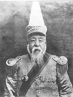 Jiang Guiti (Chinese: 姜桂題) (1844 – January 16, 1922) was a Chinese general who served under Song Qing in the suppression of the Taiping and Nian rebels and later against the Empire of Japan. He was a warlord during the warlord era and the de facto ruler of Rehe province until its conquest by the Fengtian Clique.