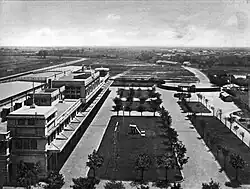 In the 1930s, the racecourse was the site of fighting between Japanese and Chinese forces several times. Following the January 28 incident of 1932, machine-gun fire was reported at the Jiangwan Racecourse as Japanese forces bombed the nearby area.[21] During the Battle of Shanghai, wherein the Imperial Japanese Army sought to capture the city, horse races were stopped.[1] The course was heavily damaged by Japanese shelling in August 1937, and though Chinese forces continued to hold the racecourse through mid-September, after a month of extensive fighting it and Jiangwan fell on 27 October 1937.[22] The Japanese established a military presence in the environs, including a prisoner of war camp located some distance from the track. Held and executed at this camp were three members of the Doolittle Raid: Dean Hallmark, Harold A. Spatz, and William G. Farrow.[23]