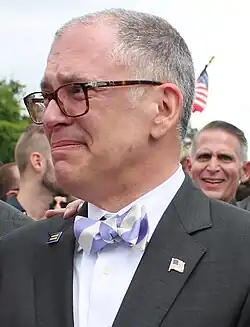 James Obergefell (/ˈoʊbərɡəfɛl/ OH-bər-gə-fel; born July 7, 1966) is an American civil rights activist who was the lead plaintiff in the 2015 U.S. Supreme Court case Obergefell v. Hodges, which legalized same-sex marriage throughout the United States.[1] Obergefell had sued the state of Ohio in 2013 due to the state's lack of legal recognition of Obergefell's marriage to his husband, John Arthur (1967–2013).[2] Obergefell was the Democratic nominee for the 89th legislative district of the Ohio House of Representatives in the 2022 elections.[3]
