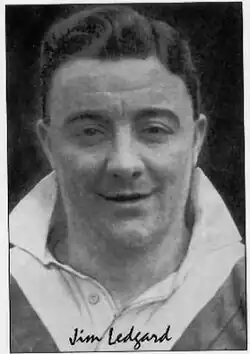 James "Jim"/"Jimmy" Ledgard (9 June 1922 – 26 January 2007) was an English rugby union and World Cup winning professional rugby league footballer who played in the 1940s, 1950s and 1960s, and coached rugby league in the 1960s. He played club level rugby union (RU) for Sandal RUFC, and representative level rugby league (RL) for Great Britain, England and Yorkshire, and at club level for Dewsbury (two spells), and Leigh, as a goal-kicking fullback,[2] and coached at club level for Bradford Northern.[5]