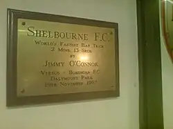 Jimmy O'Connor is an Irish former footballer notable for being the fastest hat-trick scorer in top level domestic league history. He scored three goals for Shelbourne in 2 minutes and 13 seconds, versus Bohemians at Dalymount Park on 19 November 1967.[1][2][3]