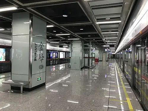 Jinfeng station (Chinese: 金峰站; pinyin: Jīnfēng Zhàn; Jyutping: gam1fung1 zaam6; lit. 'golden peak'), is a station of Line 6 of the Guangzhou Metro. It started operations on 28 December 2016.[1]
