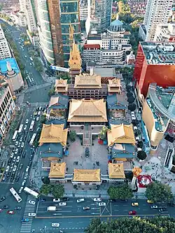 Jing'an Temple (simplified Chinese: 静安寺; traditional Chinese: 靜安寺; pinyin: Jìng'ān Sì; Shanghainese: Zin'oe Zy; lit. 'Temple of Peace and Tranquility'; historically Bubbling Well Temple) is an esoteric Tangmi Buddhist temple on West Nanjing Road (historically Nanking or Bubbling Well Road in English) in Shanghai.