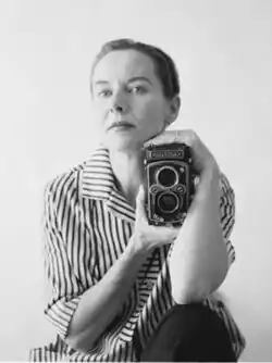 In 1953, the couple moved to Long Beach, California where Carl had been offered a high school level Spanish and Italian teaching job.[2] Jini did pottery for a while before developing a successful career as a freelance fashion photographer.[2] During this period she purchased a Rolleiflex camera, and then a Hasselblad 500-C, which (though she would occasionally use other types) became her primary camera.[7] The resulting photos, Dellaccio said, were “absolutely gorgeous.” A model, as pleased with the shots as Dellaccio, showed them to one of her Hollywood connections, who said, “Now he is a photographer.” The model took great pleasure in telling him, “This happens to be a lady”.[3] From that point on, Dellaccio was seen as a symbol of gender equality and excellence in the music/photography industry. "Anything they'd ask – ‘Oh yes, I can do that,’” Dellaccio said. “And I would do it."[5] In 1958, she joined her brother Paul on a tour of the South Sea Islands and took along her Leica, capturing one of her most cherished images, of the Tasman Sea.[2] The fashion gig lasted ten years, ending when Carl was offered a job with the Tacoma, Washington Public Schools district in 1961. The couple moved to nearby Gig Harbor. In 1962 the Tacoma Art Museum exhibited some of Dellaccio's work, including fashion photos and pictures taken on the South Pacific excursion.