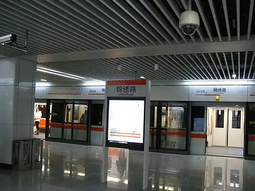 Jinxiu Road (simplified Chinese: 锦绣路; traditional Chinese: 錦繡路; pinyin: Jǐnxiù Lù) is a station on Line 7 of the Shanghai Metro. The station opened on 5 December 2009. The station is located in Shanghai's Pudong District.