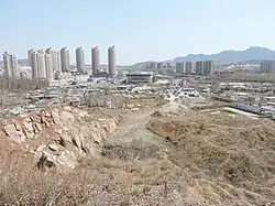 Jinzhou District (simplified Chinese: 金州区; traditional Chinese: 金州區; pinyin: Jīnzhōu Qū; lit. 'golden prefecture') is one of the seven districts of Dalian, Liaoning province, People's Republic of China. It is located about 20 kilometres (12 mi) northeast of the city centre and faces the Bohai Sea to the west as well as the Korea Bay to the east and has a longer history than Dalian itself, and used to be a thriving walled city where the officials of this area were dispatched from the central government. Recently, it is again a thriving town, having Dalian Development Area within its area as well as becoming a bedroom community to downtown Dalian. Its area is 1,352.54 square kilometres (522.22 sq mi) and its permanent population as of 2020 is 1,545,491.[3][2][4]