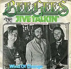 "Jive Talkin'" is a song by the Bee Gees, released as a single in May 1975 by RSO Records. This was the lead single from the album Main Course (as well as a song on the 1977 Saturday Night Fever soundtrack). It hit number one on the Billboard Hot 100 and top-five on the UK Singles Chart in the middle of 1975. Largely recognised as the group's comeback song, it was their first US top-10 hit since "How Can You Mend a Broken Heart" (1971).