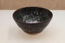 Jizhou ware or Chi-chou ware (Chinese: 吉州窯; pinyin: Jízhōu yáo; Wade–Giles: Chi-chou yao) is Chinese pottery from Jiangxi province in southern China; the Jizhou kilns made a number of different types of wares over the five centuries of production. The best known wares are simple shapes in stoneware, with a strong emphasis on subtle effects in the dark glazes, comparable to Jian ware, but often combined with other decorative effects. In the Song dynasty they achieved a high prestige, especially among Buddhist monks and in relation to tea-drinking. The wares often use leaves or paper cutouts to create resist patterns in the glaze, by leaving parts of the body untouched.