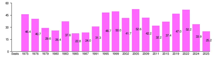 | 1979 | 1,642,136 | 27.3 (#2) | 74 / 250 | Opposition | ||