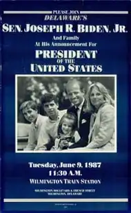 - ^ a b c Dionne Jr. E. J. (June 10, 1987). "Biden Joins Campaign for the Presidency". The New York Times. Archived from the original on November 23, 2020. Retrieved February 9, 2017.