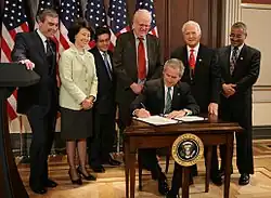 Generally, Knollenberg's voting record was conservative. He supported the North American Free Trade Agreement and led the campaign against President George W. Bush's steel tariffs.[7][8][9] In 2002 he was awarded the Mkhitar Gosh Medal by the president of Armenia.[10] On September 29, 2008, he voted against the Emergency Economic Stabilization Act of 2008.[11]
