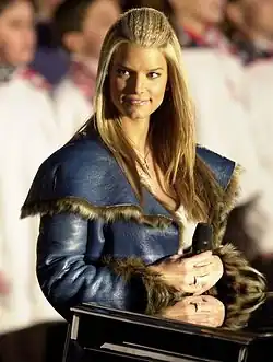 Jessica Ann Johnson (née Simpson; born July 10, 1980)[1] is an American singer, actress, and fashion designer. After performing in church choirs as a child, Simpson signed with Columbia Records in 1997, aged seventeen. Her debut studio album, Sweet Kisses (1999), sold two million copies in the United States and was led by the Billboard Hot 100-top three single "I Wanna Love You Forever". Simpson adopted a more mature image for her second studio album, Irresistible (2001), and its title track peaked within the top 20 of the chart. The album received gold certification by the Recording Industry Association of America (RIAA). Simpson's third studio album, In This Skin (2003), sold three million copies in the United States.