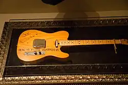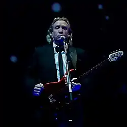 At producer Bill Szymczyk's suggestion, Walsh joined the Eagles in 1975 as guitarist and keyboardist, replacing founding member Bernie Leadon. His first album with them was Hotel California.[5] In 1998, a Guitarist magazine reader's poll named the solos by Walsh and Don Felder on "Hotel California" the best guitar solos ever.[6] Guitar World ranked it eighth in the Top 100 Guitar Solos.[7] As a member of the Eagles, Walsh was inducted into the Rock and Roll Hall of Fame in 1998, and the Vocal Group Hall of Fame in 2001. The Eagles are one of the most influential bands of the 1970s and remain one of the best-selling American bands in history.[8] Walsh's contributions to music have been praised by rock legends like Jimmy Page, Eric Clapton, and Pete Townshend.[9]