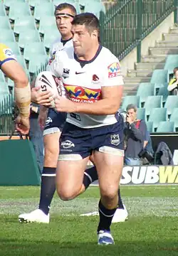 Joel Clinton (born 8 December 1981) is an Australian former professional rugby league footballer who played as a prop in the 2000s and 2010s. An Australia international representative, he played his club football in the NRL for the Penrith Panthers (with whom he won the 2003 premiership) and the Brisbane Broncos. He also played for English club Hull Kingston Rovers in the Super League.[4]
