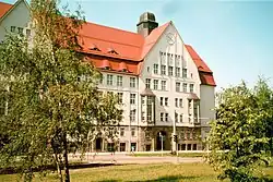 The school building was built in 1910. Throughout the years, the school has been refurbished numerous times, especially after World War II. The 57 meter wide school consists of five floors and a basement.[11]
