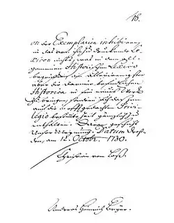 - ^ "Order against Zedler, rejecting his request for privilege, Leipzig". 12 October 1730.