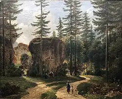 In 1803, he took his first painting excursion to Upper Austria and Salzburg. It was the first time he had seen such landscapes in person, rather than vicariously through the works of other artists. His desire to learn more was such that he went to Dresden solely to visit the Gemäldegalerie Alte Meister and copy two works each by Claude Lorrain and Jacob van Ruisdael.[2]