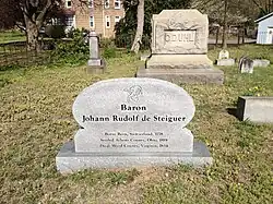 He died in 1834 and is buried in Boaz, Wood County, West Virginia. A descendant of Johann's was Louis R. de Steiguer, who was the grandson of John.[7][8][9]