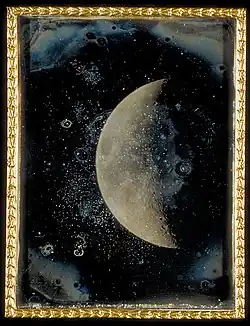 Between 1847 and 1852 Whipple and astronomer William Cranch Bond, director of the Harvard College Observatory, used Harvard's Great Refractor telescope to produce images of the moon that are remarkable in their clarity of detail and aesthetic power. This was the largest telescope in the world at that time, and their images of the moon took the prize for technical excellence in photography at the great 1851 Crystal Palace Exhibition in London.[4]