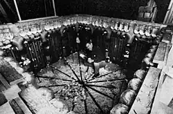 In 1956, Calhoun had joined an informal think tank organized by psychiatrist Leonard Duhl, who worked at the National Institute of Mental Health (NIMH).[22] The think tank's full name was the Committee to Explore the Influence of Physical Social Environmental Variables as Determinants of Mental Health, but its 17 members dubbed themselves "Space Cadets" because of their interest in how physical space affected well-being.[23] The members had diverse specializations including architecture, city planning, physics, biology and mathematics.[22] For more than a decade, the Space Cadets met two or three days each year, and the lively exchange of ideas stimulated Calhoun's thinking. It prompted him to question the existing literature on population growth in animals and humans.[24] With help from his mathematician colleagues, Calhoun constructed a new statistical model to predict the level of "social welfare" in a rodent colony. The model's three key variables were: "the number of animals interacting with one another, the time between when an animal ended one social interaction and when it began another (the 'refractory' period), and the size of the space in which social interactions took place."[24]