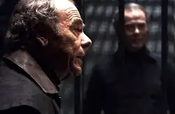 According to Jon D. Bohland, Cavil has been described as the Cylon who best "fits the cinematic genocide perpetrator profile as the stereotypical remorseless killer with a lust for power and violence". Bohland compares him to "nationalists leaders such as Milosevic, Hitler and Pol Pot", noting that his strength, just like theirs, comes from being able to manipulate their followers by exploiting their grievances against other ethnicities (in this case, Cylon grievances versus the "humans").[7] While an atheist himself, even described as the Cylon who "exhibits the most resistance to religion", Cavil, in one of his forms masquerading as a human priest, is able to use it to manipulate those who are more religious, convincing them that they are acting as part of God's will.[7][8][9] Bohland, as well Patrick Thaddeus Jackson remarked that Cavil's mentality is warped by his loathing of his creators, a form of an Oedipal complex.[7][10] Maureen Ryan of the Chicago Tribune wrote: