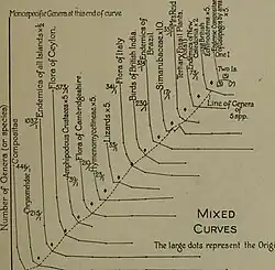 Willis formed the Age and Area hypothesis during botanical field work in Ceylon where he studied the distributional patterns of the Ceylonese vascular plants in great detail.[5] According to his hypothesis the extent of range of a species may be used as an indication of the age of that species. He also maintained that the "dying out" of species occurs rarely, and that new forms arise by mutation rather than by local adaptation through natural selection.[6] Willis defined his hypothesis as: