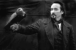 In 2012, Cusack played Edgar Allan Poe in James McTeigue's biopic film The Raven (2012).[42] On acting in a real life role, Cusack said, "You have to get yourself as close to insanity as you can, but yet, be able to not go insane." He referred to the source of Poe's letters and writing, and used it as material for his role.[43] Cusack then starred in another real life role as Richard Nixon in Lee Daniels' The Butler (2013). Daniels later said, "I love working with John Cusack. He's terrifying, he's electrifying, and he inspires me to be a better director. He's a fiery, intense presence on set. We never, ever rub up against each other but he fuels me."[44]
