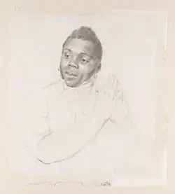 Downman was the son of Francis Downman, attorney, of St Neots, and Charlotte Goodsens, daughter of Francisco Goodsens, a musician of the Chapel Royal from 1711 to 1741; his grandfather, Hugh Downman (1672–1729), had been the master of the House of Ordnance at Sheerness. The Downman family is usually known as a Devonshire one, but the exact connexion between the artist and the Devonshire branch has not been traced.[1] Earlier works assumed Downman was born in 1750 near Ruabon in Denbighshire where he first went to school; however it is now known he was baptised on 12 September 1749 at Eynesbury in Huntingdonshire,[2] adjacent to St Neots. After his early schooling in Ruabon, and then briefly in Liverpool, he attended finally the Royal Academy schools, and was for a while in the studio of Benjamin West.