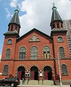 The cornerstone of the Manhattan building was laid in 1879. The plot of land, previously occupied by St. Bartholomew's Episcopal Church, cost $70,000. The nine-story mission house cost $160,000 to build,[5] and was opened in 1881.[2]