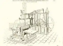 Of Farey’s work, only the first of two volumes was published at the time, which dealt mostly with the history of steam engines up to the death of James Watt. Farey described all sorts of engines, but gave special attention to those designed by Smeaton. Besides this, the volume also included sections on the principles of mechanics and the design of engines, avoiding mathematical formulas as most engineers at the time would not have been able to understand them, according to Farey...[8]