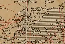 In the mid-nineteenth century, black slaves were fleeing the United States by the thousands and coming north to Ontario, Quebec, and New Brunswick, via the Underground Railroad, the vast majority of these fugitive slaves arriving in Southwestern Ontario, crossing mainly over the Detroit River and to a lesser extent the Niagara River. After the Slavery Abolition Act 1833 of the British Empire, the number of refugees from slavery coming to the colonies grew, and local leaders in the region became concerned that the influx of refugees, estimated to be around 30,000 in 1852,[2] made it more difficult for Blacks to find jobs in their new homeland. As early as 1846, meetings were held by local church leaders to help remedy the situation, and later that year, the Refugee Home Society was founded.[3] The Refugee Home Society was dissolved in 1864, due to limiting land policies, lack of significant leadership. Families migrated to Haiti and various parts of Canada.[4]
