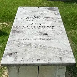 John preached in the revivalistic style of Calvinism that his father was known for as part of the First Great Awakening. He continued to serve the parishes in New Jersey that his father had served at Raritan, Millstone, and North Branch. John lived in the Old Dutch Parsonage in Somerville where he served the three local congregations until his death. He took in students and a room in the house served as a Dutch Reformed religious seminary. This center of education was a forerunner of the New Brunswick Theological Seminary and Queen's College, which later developed into Rutgers University.[2][3] John died on September 5, 1754, and was buried at the Old Somerville Cemetery.[1]