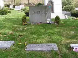 The funeral was the largest in New York since Rudolph Valentino's, with over ten thousand people crowding the streets outside.[14] The media circus surrounding Garfield's death led to a running joke, "John Garfield Still Dead Syndrome", that parodied the phenomenon; it would later inspire "Generalissimo Francisco Franco is still dead" in the 1970s after Francisco Franco's protracted terminal illness.[15] Garfield's estate, valued at "more than $100,000", was left entirely to his wife. Shortly afterward, the HUAC closed its investigation of John Garfield, leaving him in the clear. Garfield was interred at Westchester Hills Cemetery in Hastings-on-Hudson, Westchester County, New York.