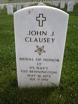 John Joseph Clausey (May 16, 1875 – September 9, 1951) was a chief gunner's mate serving in the United States Navy during who received the Medal of Honor for bravery.