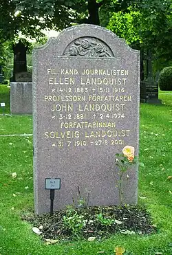 Landquist was married to Elin Wägner from 1910 to 1922 and later, from 1938, to Solveig Landquist.[2]