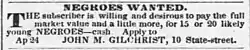 - ^ "Negroes Wanted". Camden Commercial Courier. May 19, 1838. p. 4. Retrieved 2024-05-24.