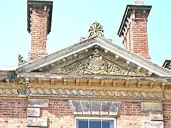 Garthmyl Hall Pediment showing terracotta including armorial and ornamented chimney stacks designed by J.K. Colling