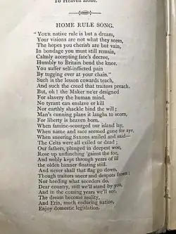 - Irish National Poems, Dublin, Sealy, Bryers & Walker, 1886. Bound with green cloth, title and author appear in gilt on upper cover and a gilt harp and bunch of shamrock in centre, gilt title on spine.