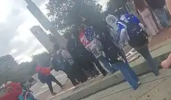 Photograph of students from arriving at Pasadena City Hall during the Dena Against I.C.E. Walkout, a student-led walkout protest that multiple high schools across Pasadena, California participated in.