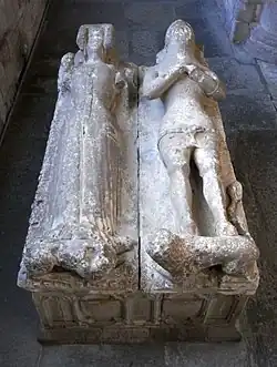 Two effigies believed to represent Sir John Sully survive in Devon. One in the parish church of Iddesleigh in the form of a crossed-legged knight, traditionally the appropriate form for a crusader, situated in a low arched recess in the north chancel chapel.[21] The other, next to the effigy of his wife, is in Crediton Parish Church on a chest tomb ,[22] in the east chapel of the south aisle.