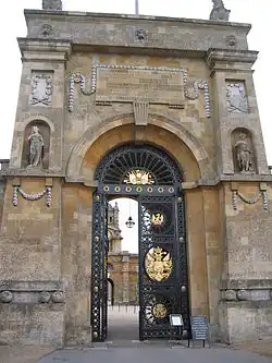 As an architect (or surveyor, as the term then was) Vanbrugh is thought to have had no formal training (see "Early life" above). To what extent Vanbrugh's exposure to contemporary French architecture during years of imprisonment in France affected him is hard to gauge, in April 1691[36] he was transferred to Château de Vincennes in the months he spent as a prisoner there he would have got to know the architect Louis Le Vau's grand classical work (1656–61) in the château well. On his release from prison (he was at the Bastille by then) on 22 November 1692 he spent a short time in Paris,[37] there he would have seen much recent architecture including Les Invalides, the Collège des Quatre-Nations and the east wing of the Louvre Palace. His inexperience was compensated for by his unerring eye for perspective and detail and his close working relationship with Nicholas Hawksmoor. Hawksmoor, a former clerk of Sir Christopher Wren, was to be Vanbrugh's collaborator in many of his most ambitious projects, including Castle Howard[38] and Blenheim.[39] During his almost thirty years as a practising architect, Vanbrugh designed and worked on numerous buildings. More often than not his work was a rebuild or remodel, such as that of Kimbolton Castle, where Vanbrugh had to follow the instructions of his patron. Consequently these houses, which often claim Vanbrugh as their architect, do not best display his own architectural concepts and ideas. In the summer of 1699 as part of his architectural education Vanbrugh made a tour of northern England, writing to Charles Montagu, 1st Duke of Manchester, (he was still an Earl at the time) on Christmas Day of that year: 'I have seen most of the great houses in the North, as Ld Nottings (sic): Duke of Leeds Chattesworth (sic) &C.'[40] This itinerary likely included many of the great Elizabethan houses, including: Burghley House, Wollaton Hall, Hardwick Hall and Bolsover Castle, whose use of towers, complex skylines, bow widows and other features would be reinterpreted in Vanbrugh's own buildings.