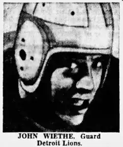 John Albert "Socko" Wiethe (October 17, 1912 – May 3, 1989) was an early all-around sports star in football, baseball and basketball. He played professional American football guard/linebacker in the National Football League. He played four seasons for the Detroit Lions (1939–1942). He also briefly played in the National Basketball League during the late 1930s, and also played independent pro baseball. He later coached both football and then basketball at the University of Cincinnati. In later years, he was also active in local Cincinnati politics as a Democrat.
