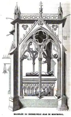 ![]() The mausoleum of John de Montmirail in Longpont Abbey (1641 engraving) | |